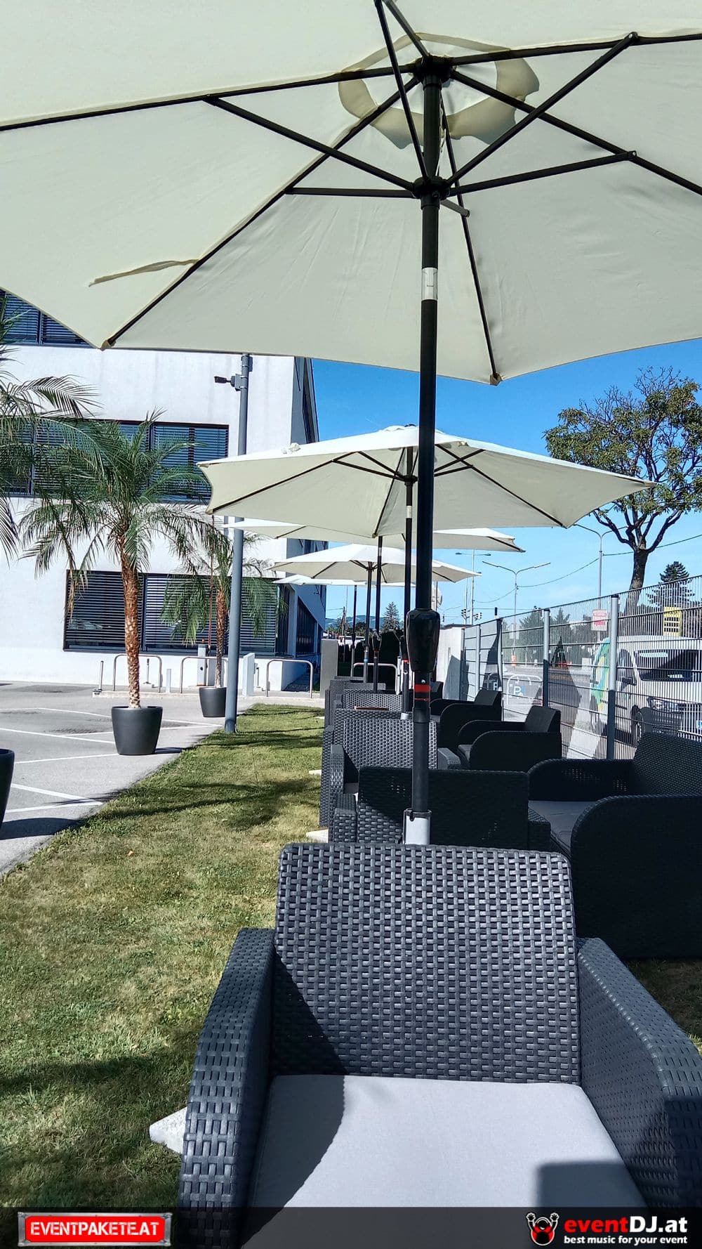 Im Komplettset „Sonnenschirme mieten“ inkludiert: