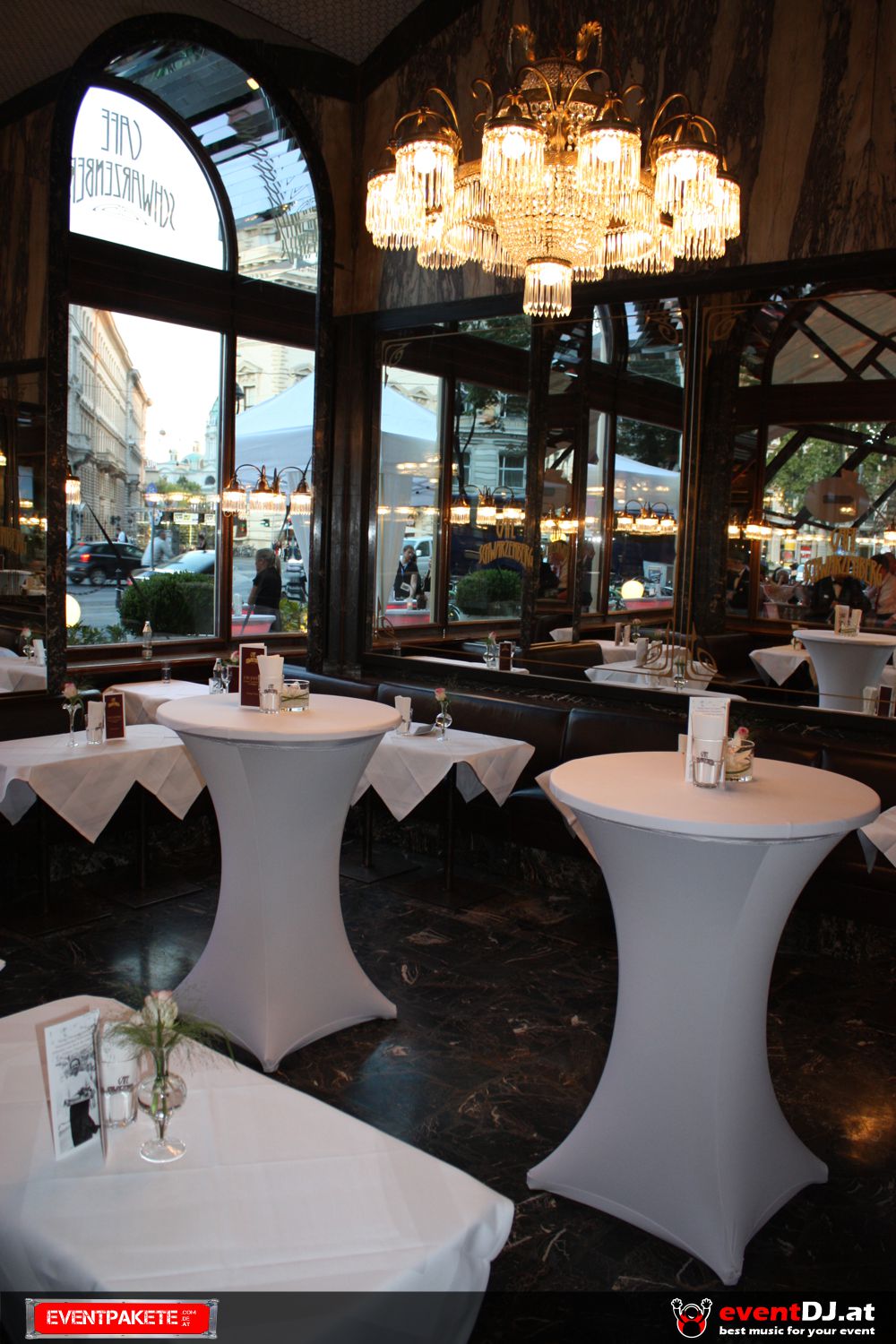 Unser Profi-Tipp: „Die dekorativen weißen Stehtisch-Hussen gleich dazu buchen (als Upgrade)!“